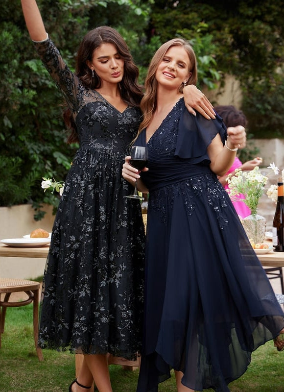 Chaque détail de cette Robe Portefeuille Noire Étoilée a été pensé pour vous mettre en valeur. Le tissu délicat en dentelle, orné de broderies scintillantes, crée un jeu de lumière fascinant qui attire l'œil et apporte une dimension féérique à votre tenue. La forme trapèze de la jupe, élégante et aérienne, assure une silhouette équilibrée et flatteuse pour toutes les morphologies, tandis que les manches longues en dentelle ajoutent une touche de mystère et de sophistication. Grâce à sa doublure complète et son soutien-gorge intégré, vous bénéficiez d'un maintien parfait et d'une opacité totale, pour une confiance inébranlable. Sa fermeture éclair discrète au dos garantit un ajustement impeccable et une silhouette parfaitement dessinée, sans compromis sur le style.